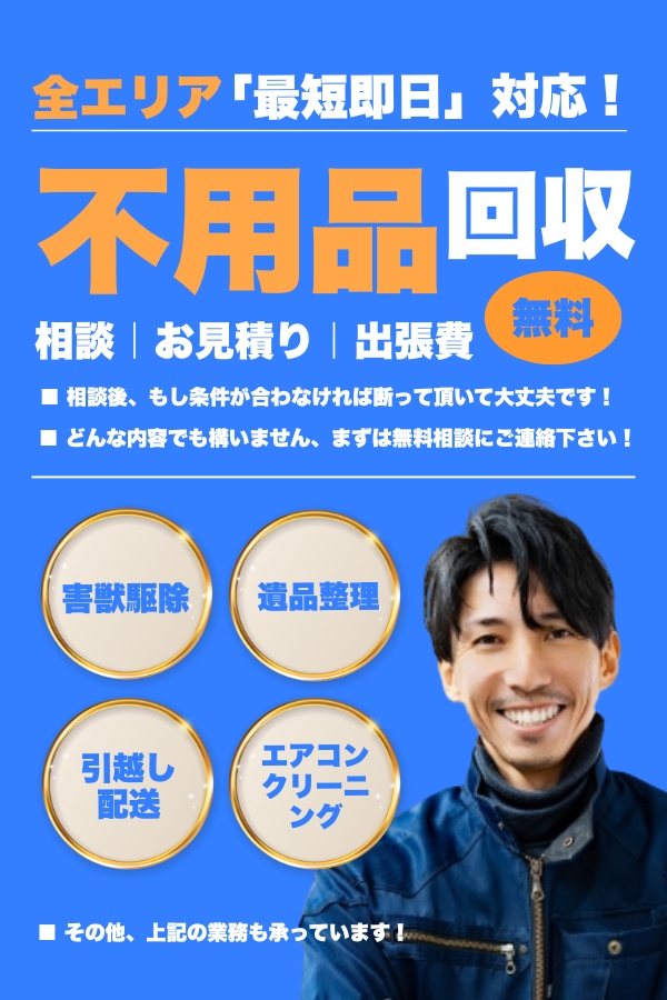 引っ越しのために急いで不用品を処分する必要があり、お願いしました。問い合わせから見積もり、回収までが驚くほどスムーズで、予定より早く片付きました。スタッフの方もとても丁寧で、安心してお任せできました。